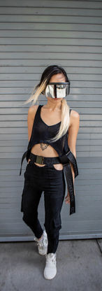 FAUX SUEDE LEATHER GEOM TANK [BLACK]